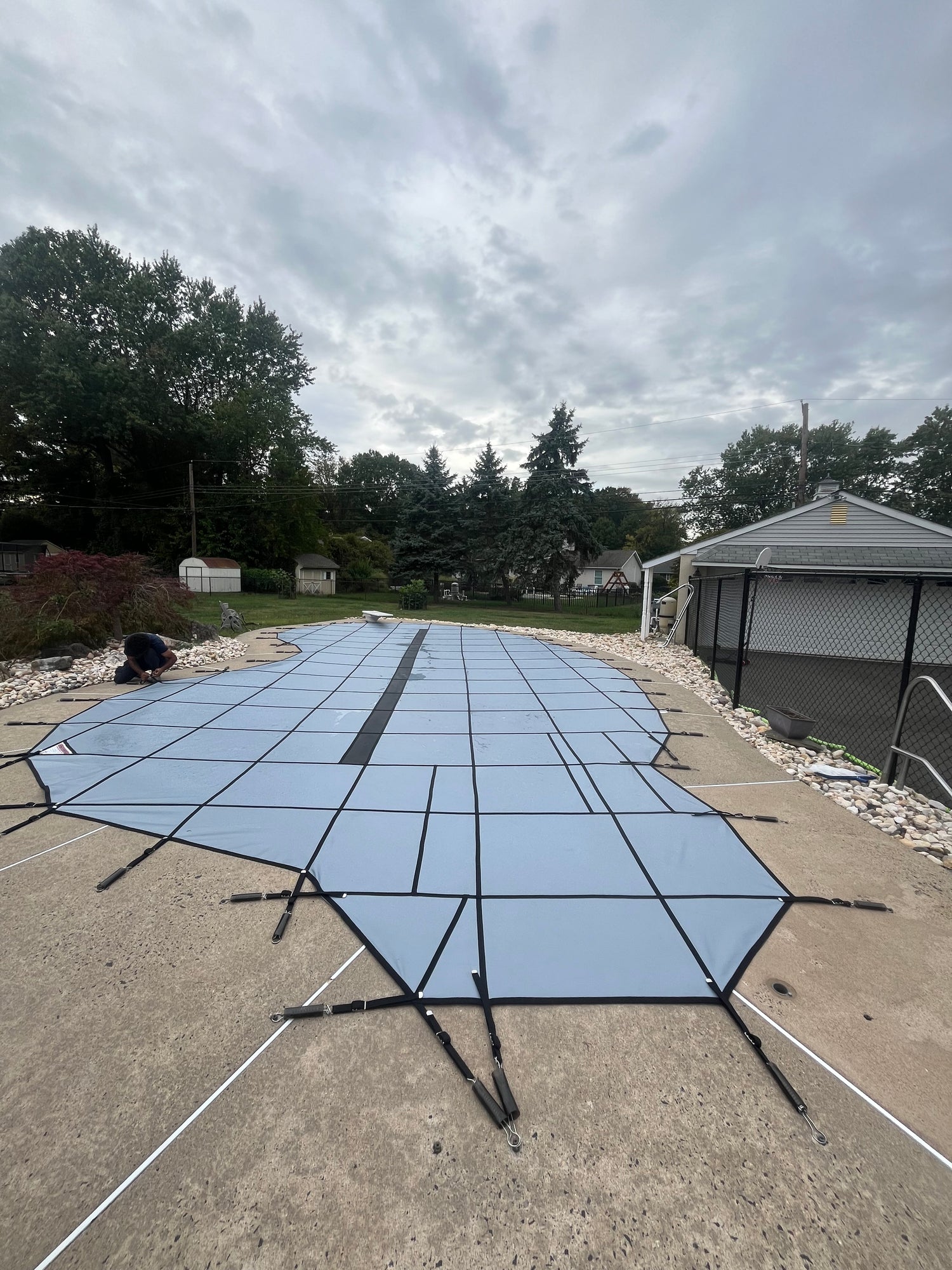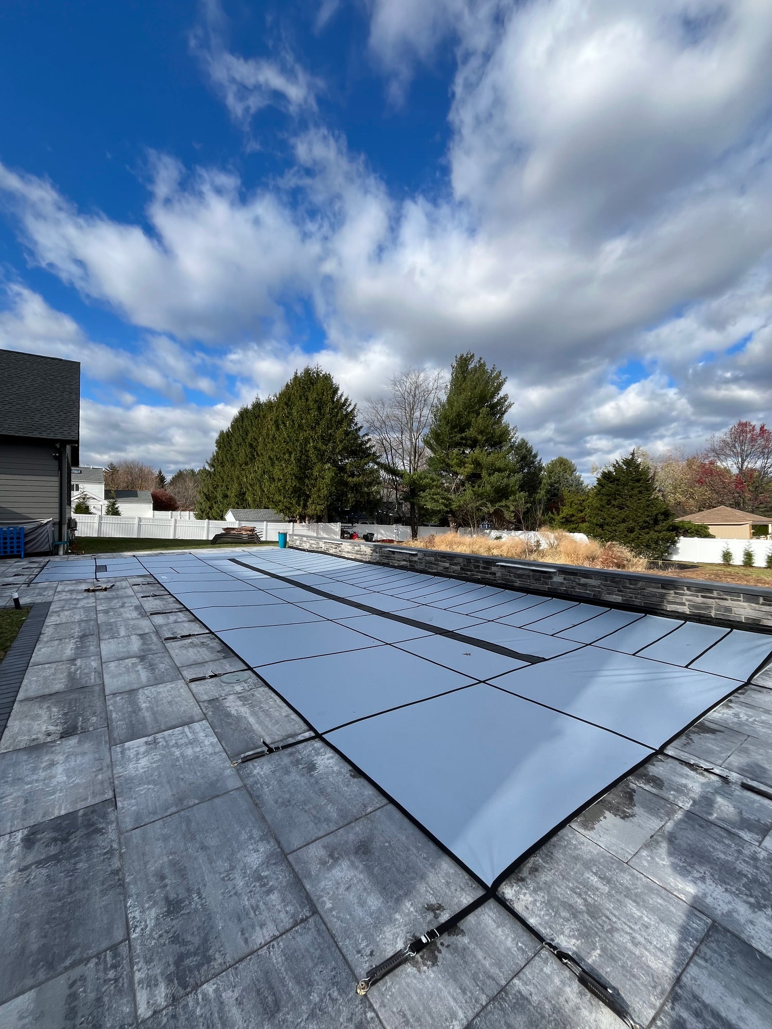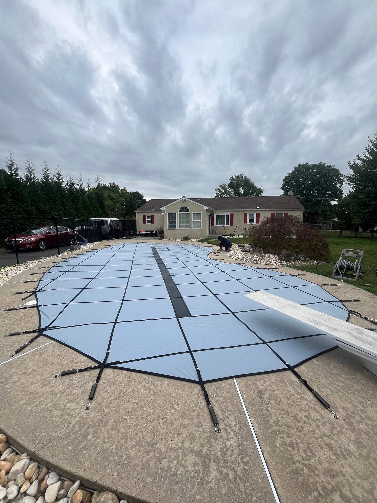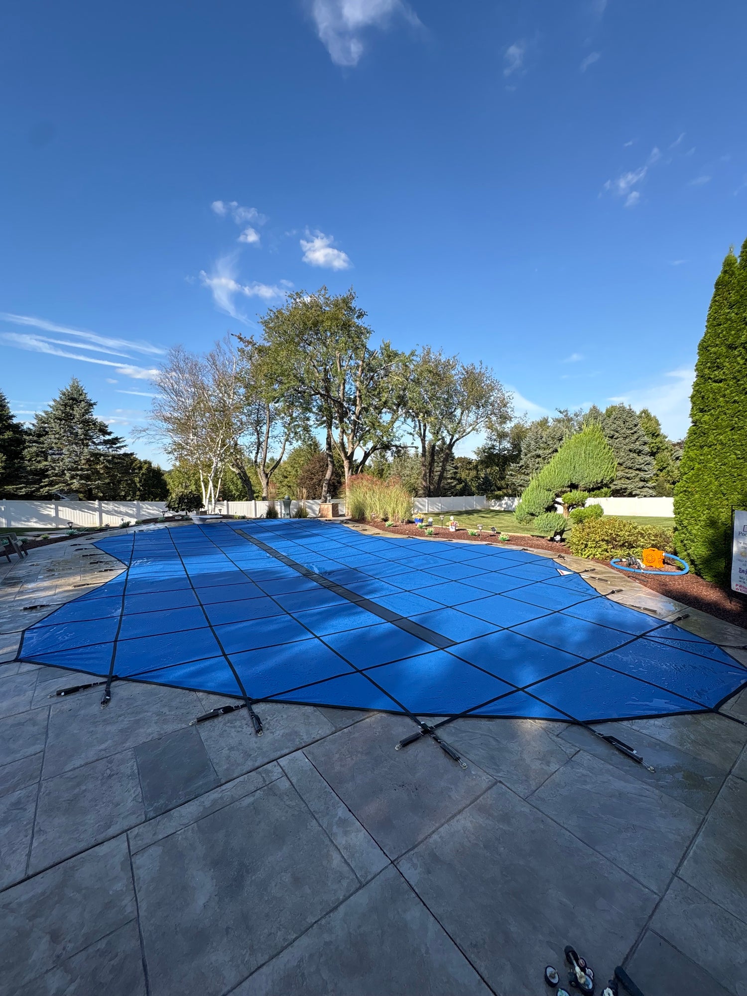 The UltraSolid Safety Cover offers the ultimate in pool protection for pools in the Bucks County and Montgomery County areas—with its durable polyester scrim encased in a high-performance vinyl coating. Featuring a built-in center drain strip, this cover efficiently channels water away while blocking debris and sunlight, ensuring a cleaner, low-maintenance pool opening every spring.